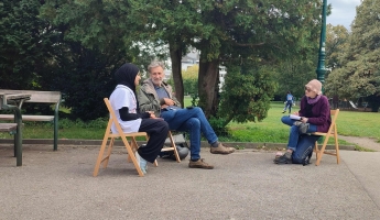 Während des kurzen Gesprächs zeichnet Hannah Fras ein Porträt der befragten Person.
